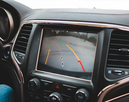 Backup cameras are common on vehicles that tow difficult-to-see trailers, such as motorhomes. Recently, with the rise in popularity of in-dash DVD players and GPS navigation systems which aid in justifying the expense of adding a coluor LCD to the driver’s seat, they have become much more common, often available as optional factory accessories on standard passenger trucks and sport utility vehicles, as well as aftermarket accessories. Inside the vehicle, the display is typically wired to automatically sense when the transmission is set in reverse, showing the backup view while in reverse and or providing grid guidelines by detecting the parking lot markings to aid the driver. The display will show the map (or other content) on the screen at all other times typically in other gear modes in most parking systems.